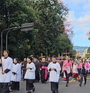 No dia 16 de março, a cidade de Joaçaba foi palco da 35ª Caminhada Penitencial de Frei Bruno, um evento que reuniu milhares de fiéis de diversas regiões, movidos pela fé, devoção e pelo exemplo deixado por Frei Bruno. Considerada uma das mais importantes manifestações religiosas da região, a caminhada é um momento de reflexão e espiritualidade, em honra ao legado do frade que dedicou sua vida à caridade, humildade e serviço ao próximo. A caminhada percorreu um trajeto que reflete os caminhos que Frei Bruno trilhou em vida, levando consolo e palavras de fé às famílias. Fiéis de todas as idades participaram carregando cruzes e esperanças, rezando o terço e cantando hinos religiosos enquanto avançavam, cheios de devoção e gratidão. O evento é uma expressão viva da espiritualidade e das virtudes que marcaram a vida de Frei Bruno, como sua bondade, simplicidade e dedicação incansável aos necessitados. Entre os presentes, Maria Aparecida, uma devota que participa da caminhada há mais de dez anos, compartilhou seu testemunho: “A cada ano que participo, sinto a presença de Frei Bruno em nossos corações. Ele foi um exemplo de fé e amor ao próximo. Seguir seus passos nesta caminhada me dá forças e me faz acreditar que podemos ser melhores, como ele sempre pregava.”