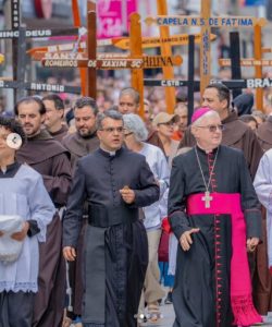 No dia 16 de março, a cidade de Joaçaba foi palco da 35ª Caminhada Penitencial de Frei Bruno, um evento que reuniu milhares de fiéis de diversas regiões, movidos pela fé, devoção e pelo exemplo deixado por Frei Bruno. Considerada uma das mais importantes manifestações religiosas da região, a caminhada é um momento de reflexão e espiritualidade, em honra ao legado do frade que dedicou sua vida à caridade, humildade e serviço ao próximo. A caminhada percorreu um trajeto que reflete os caminhos que Frei Bruno trilhou em vida, levando consolo e palavras de fé às famílias. Fiéis de todas as idades participaram carregando cruzes e esperanças, rezando o terço e cantando hinos religiosos enquanto avançavam, cheios de devoção e gratidão. O evento é uma expressão viva da espiritualidade e das virtudes que marcaram a vida de Frei Bruno, como sua bondade, simplicidade e dedicação incansável aos necessitados. Entre os presentes, Maria Aparecida, uma devota que participa da caminhada há mais de dez anos, compartilhou seu testemunho: “A cada ano que participo, sinto a presença de Frei Bruno em nossos corações. Ele foi um exemplo de fé e amor ao próximo. Seguir seus passos nesta caminhada me dá forças e me faz acreditar que podemos ser melhores, como ele sempre pregava.”