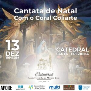 Pensando em toda esta magia que o coral nos remete e faz surgir boas sensações e emoções positivas a Catedral Santa Terezinha trará no dia 13 de dezembro, a Cantata de Natal com o Coral Coliaerte. Para os que amam esta época do ano poderão se emocionar gratuitamente, com canções lindas a partir das 19h30.