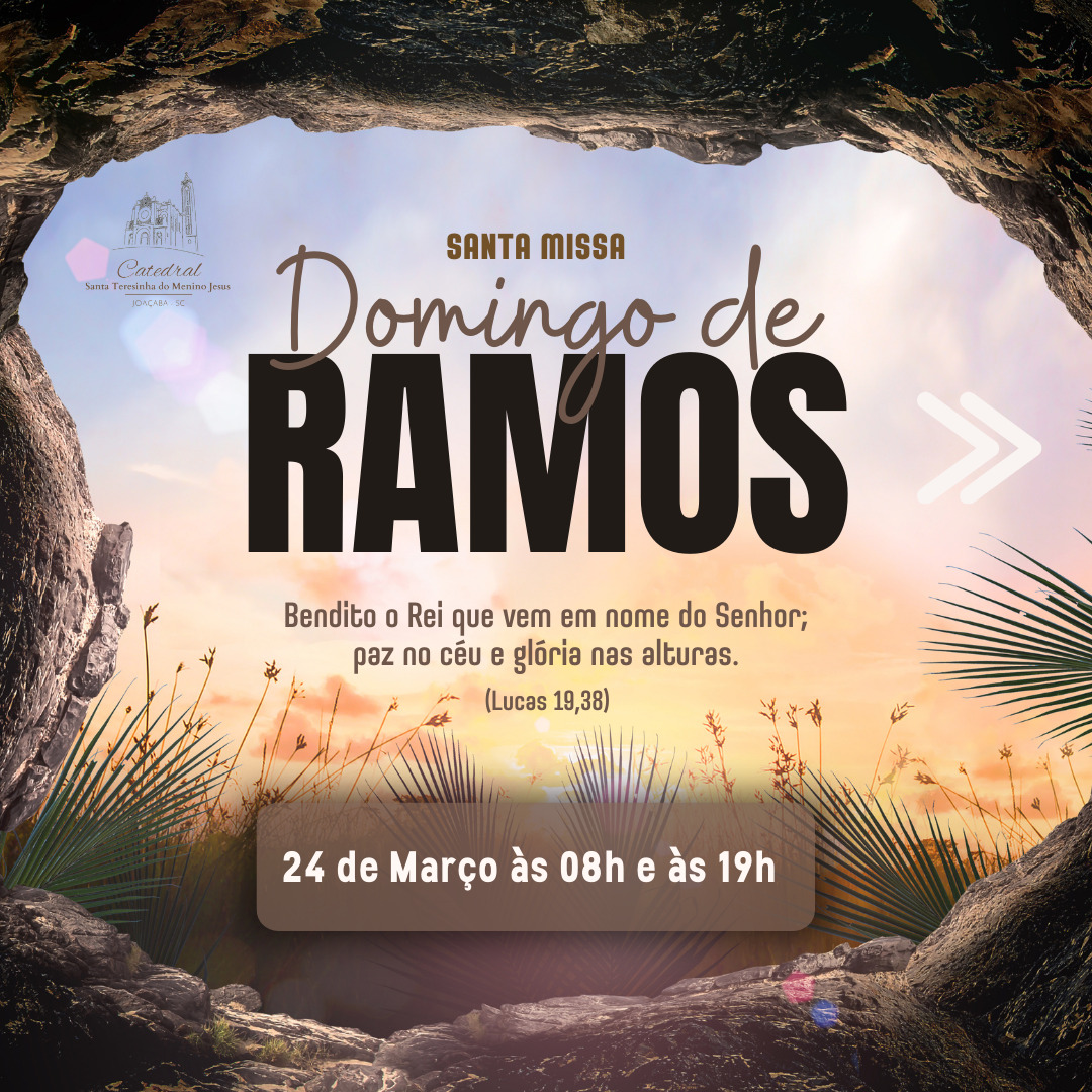 Domingo de Ramos (24 de março): haverá celebração às 08h e, posteriormente, às 19h.