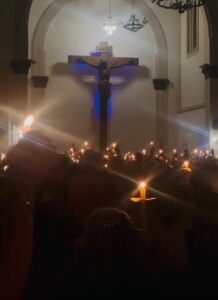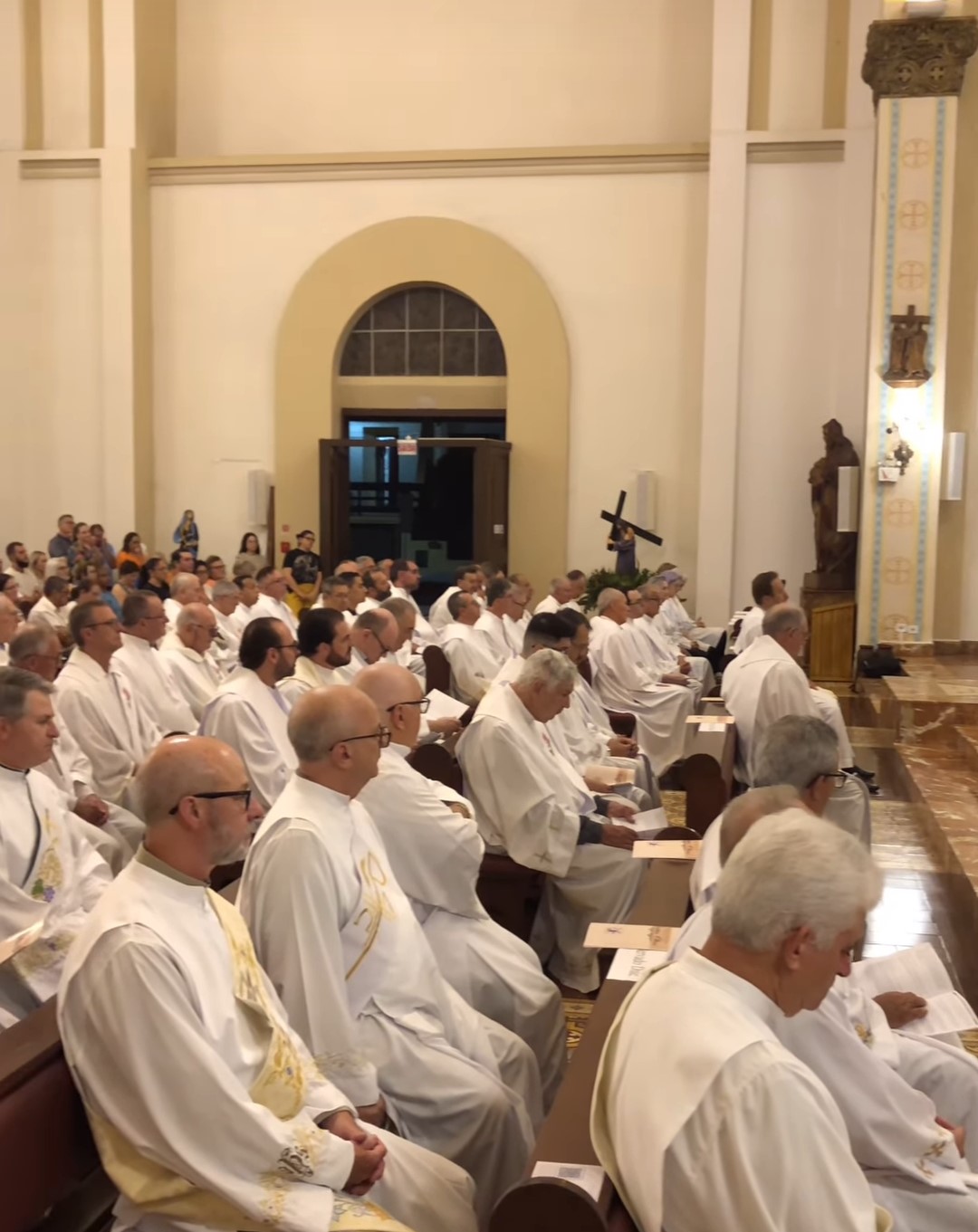 Procissão do Encontro: No dia 26 de março, a “Procissão do Encontro” reuniu homens e mulheres em uma caminhada de fé que simboliza o encontro doloroso de Maria com Jesus a caminho da crucificação. Partindo da Igreja Matriz Senhor Bom Jesus em Herval d´Oeste e da Igreja Matriz São José do bairro Cruzeiro do Sul em Joaçaba, a procissão convergiu na Catedral de Joaçaba, onde cânticos e orações preencheram o ambiente. O sermão das Sete Últimas Palavras de Jesus na cruz ecoou entre os presentes, um lembrete do sacrifício e da promessa de redenção. Santa Missa da Unidade com Bênção dos Óleos: presidida pelo Bispo Dom Mário, a missa que aconteceu na noite do dia 27 de março, foi um momento de comunhão e renovação espiritual, onde os Santos Óleos foram consagrados, simbolizando a força do Espírito Santo. A cerimônia reforçou a unidade da igreja e o compromisso dos sacerdotes e fiéis com a missão cristã.