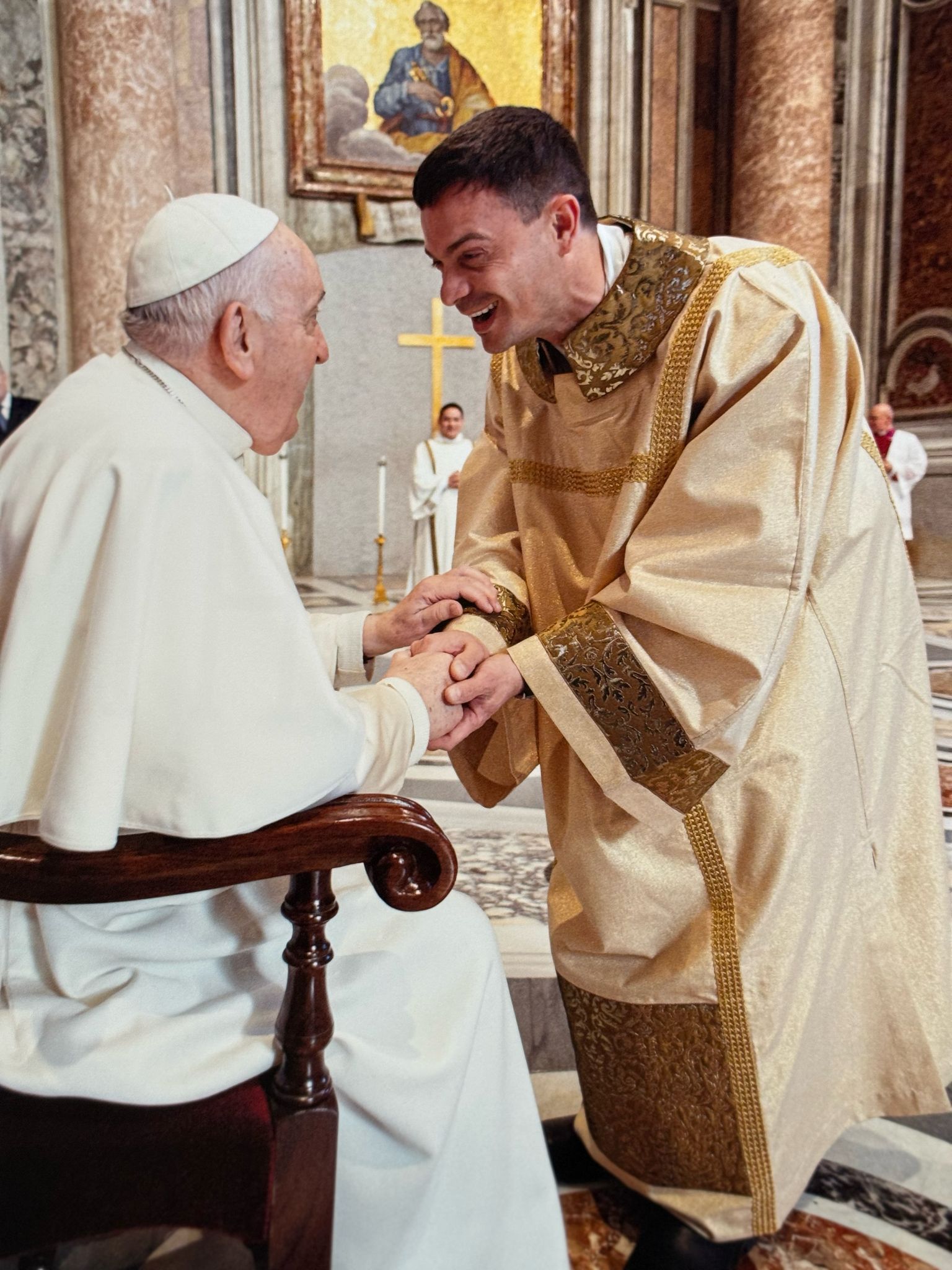 Pe. Leandro: “Para mim, é uma alegria estar em Roma por ocasião dos funerais do Papa Francisco e da realização de um conclave para a eleição de um novo sucessor de Pedro. Participar desses mistérios da Igreja envolve não apenas a participação e a eleição por parte dos cardeais, mas, acima de tudo, a ação de Deus, que acompanha a sua Igreja, ainda peregrina nesta terra. Papa Francisco deixa a Igreja em um ano jubilar, o que já é um grande sinal, pois o ano jubilar é sempre uma ocasião de esperança, renovação, perdão e de um acerto de contas pessoal com Deus. É uma oportunidade única de experimentar, de maneira pessoal, a imensa misericórdia que Deus direciona a todos nós. Papa Francisco foi um Papa que nos lembrou, continuamente, da misericórdia divina.”