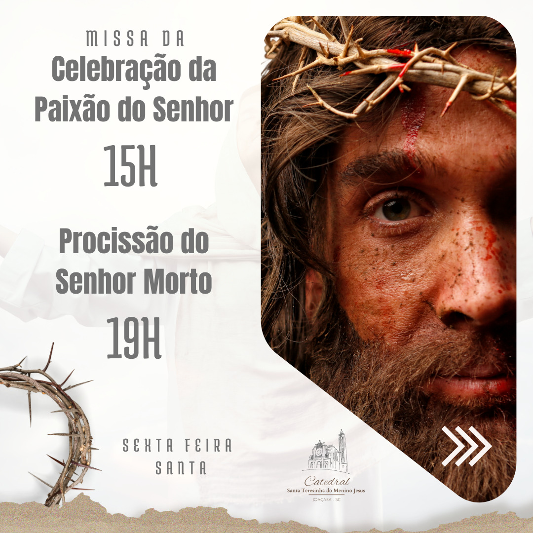 Convidamos a todos para participar da Santa Missa da Paixão do Senhor, que acontecerá no dia 29 de março às 15h, e da Procissão do Senhor Morto, às 19h. Que este momento de reflexão e contemplação nos conduza à esperança e à renovação da fé.